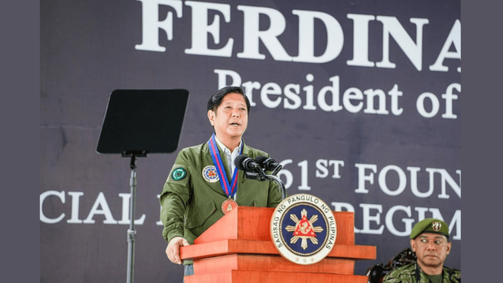 President Ferdinand R. Marcos Jr. on Sunday urged the Special Forces Regiment Airborne (SFRA) of the Philippine Army to continue supporting the Filipino people in times of crisis as he assured them of his commitment to strengthening its capabilities and ensuring their welfare and their family.