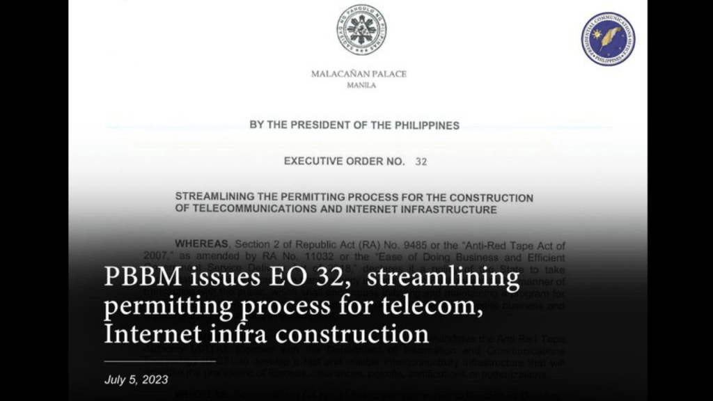 President Ferdinand R. Marcos Jr. on Wednesday issued Executive Order (EO) No. 32, streamlining the permitting process for the construction of telecommunications and Internet infrastructure in the country.