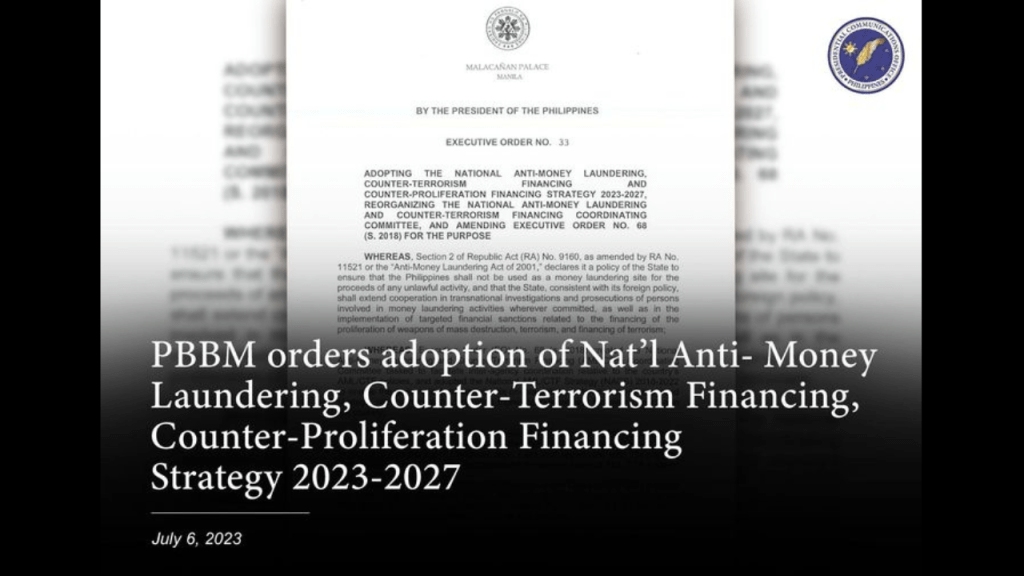 President Ferdinand R. Marcos Jr. has ordered all government offices and departments to adopt the National Anti-Money Laundering, Counter-Terrorism Financing, and Counter Proliferation Financing Strategy (NACS) 2023-2027.