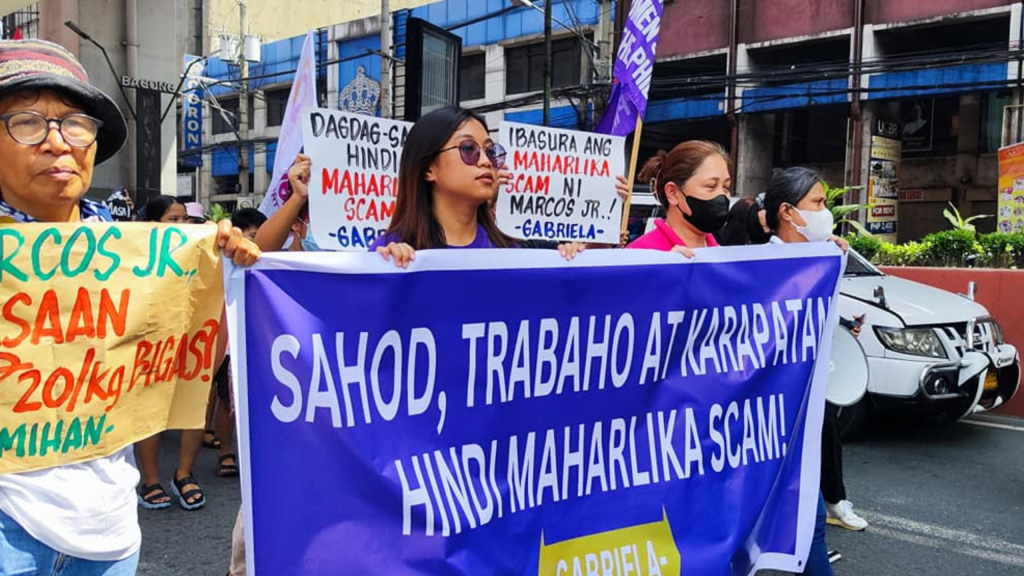 “What we demand is wage increase that will afford our families a decent life. What we demand is security in our homes. What we demand is for our rights to be upheld and respected. But what did Marcos Jr. give us? He gave us the Maharlika Investment Fund that will only rob us of our already measly earnings! He gave us projects under Build Better More that will only displace us from our homes and livelihood! He gave us worsened persecution of women through the Anti-Terrorism Law!” blasted Palce.