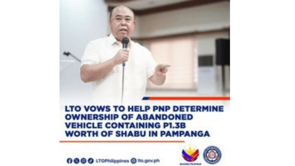 Under the guidance of Department of Transportation Secretary Jaime Bautista, Land Transportation Office (LTO) chief Assistant Secretary Atty. Vigor Mendoza II vowed to work closely with the Philippine National Police (PNP) in determining the registration of the abandoned vehicle that was found in Pampanga, which contained illegal drugs.
