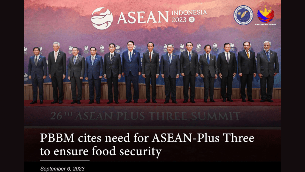 To ensure food security, President Marcos said that regional mechanisms must be strengthened, as well as increase the emergency rice supply of the APT through the ASEAN Plus Three Emergency Rice Reserve (APTERR).