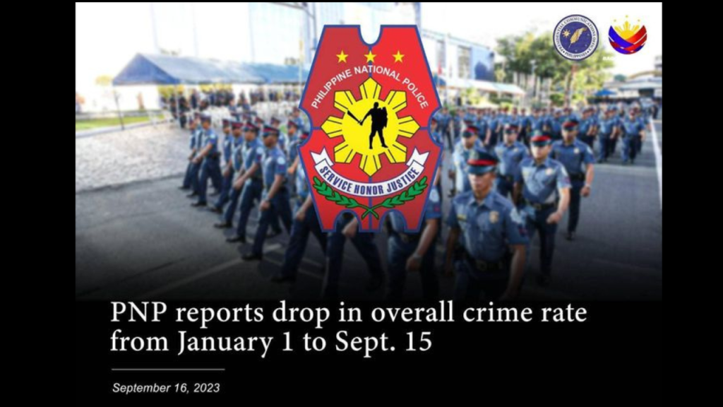 The Philippine National Police (PNP) under the Marcos administration announced on Saturday a significant drop in crime rate this year compared to the same period last year.