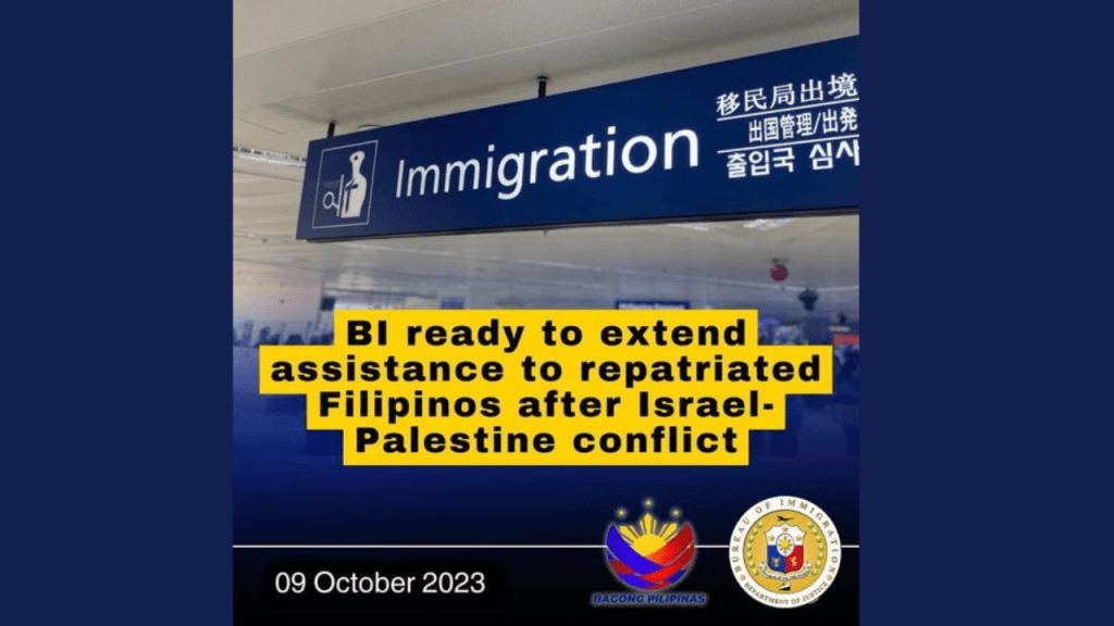 The Bureau of Immigration (BI) said it is ready to extend assistance to Filipinos who may possibly be repatriated following the Israel-Palestine conflict.