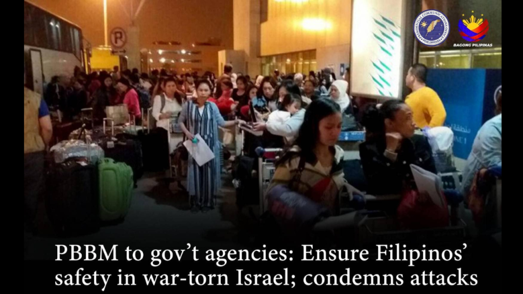 “The President has instructed the Department of Migrant Workers (DMW) and the Overseas Workers Welfare Administration (OWWA) to locate and account for all overseas Filipino workers (OFWs) and their families in Israel,” the PCO said.