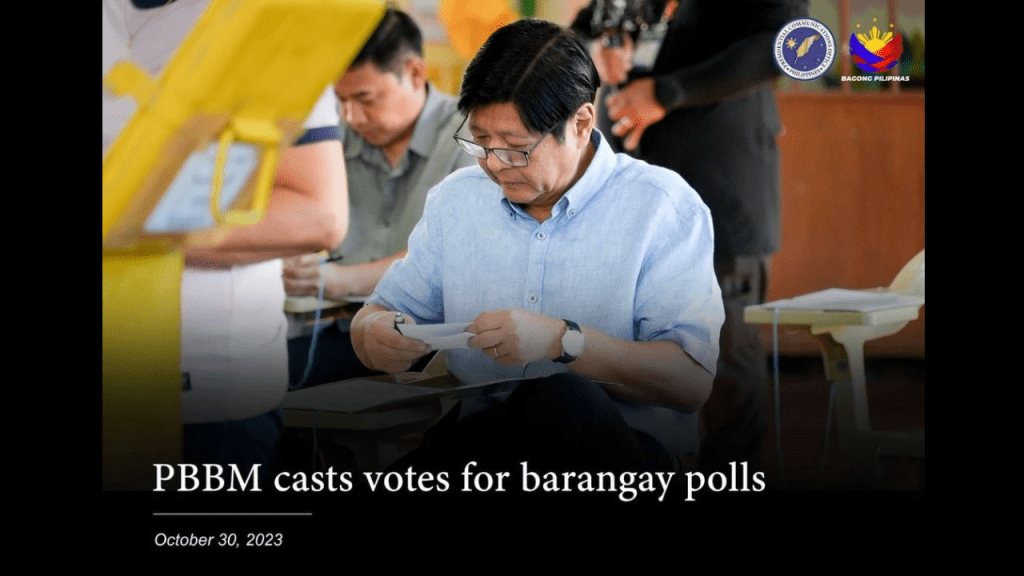 President Ferdinand R. Marcos Jr. cast his vote on Monday for the barangay elections at the Mariano Marcos Memorial Elementary School in Batac City, Ilocos Norte where he also urged the Filipinos to exercise their rights to suffrage.