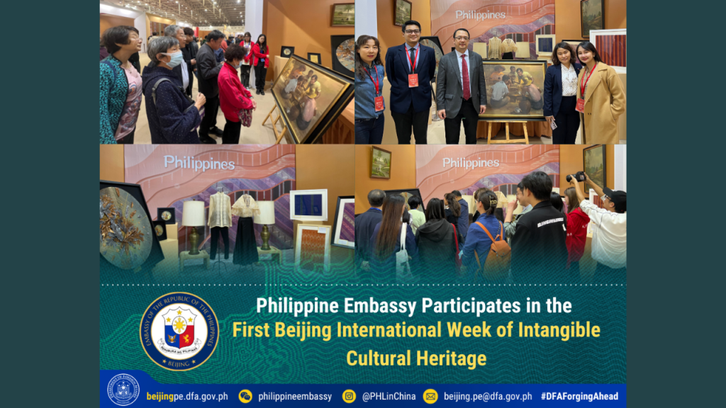 The Philippine Embassy in Beijing participated in the “First Beijing International Week of Intangible Cultural Heritage,” which was held at the National Agricultural Exhibition Center in Beijing from 22 to 25 October 2023.