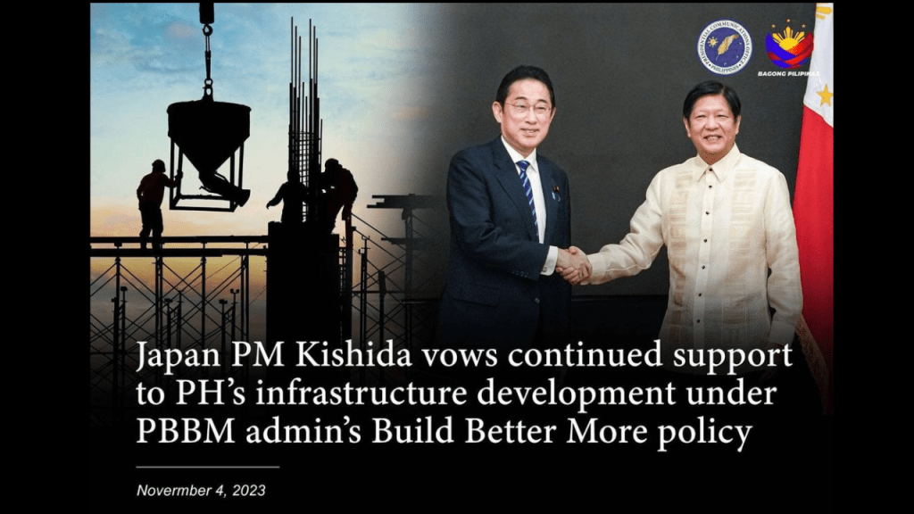 Japan Prime Minister Fumio Kishida on Friday said his government will continue supporting the Philippine’s public-private infrastructure developments in line with the Marcos administration’s Build Better More policy in addition to smart agriculture and renewable energy adoption.