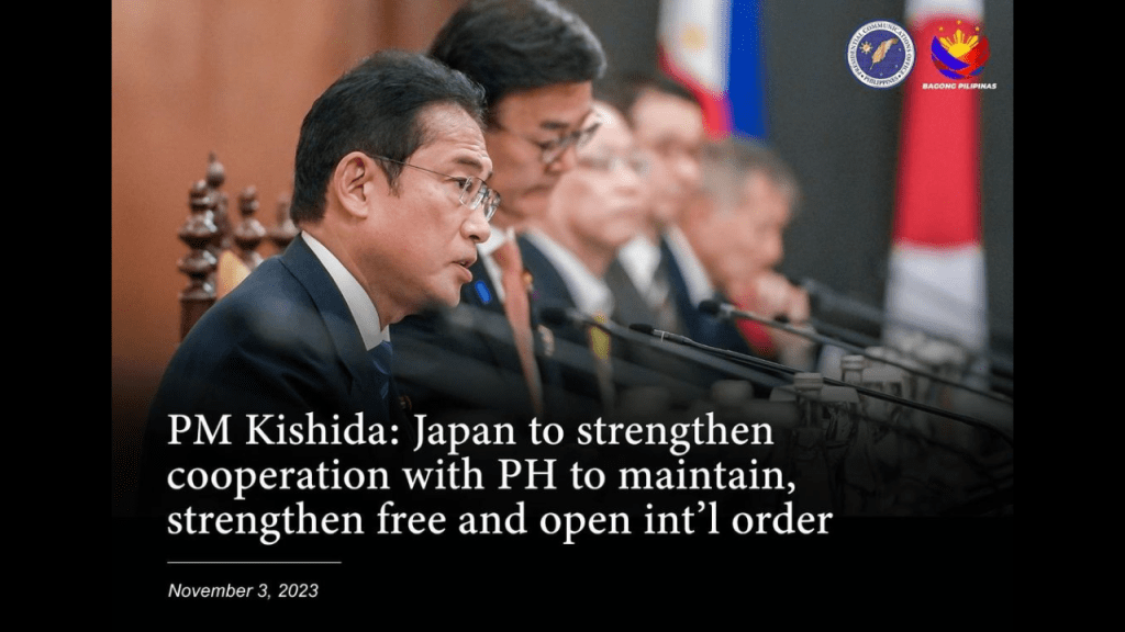 “Japan and the Philippines are both maritime nations and strategic partners sharing a fundamental principles and values,” Kishida said in his opening statement during a bilateral meeting with President Ferdinand R. Marcos Jr. in Malacañang.