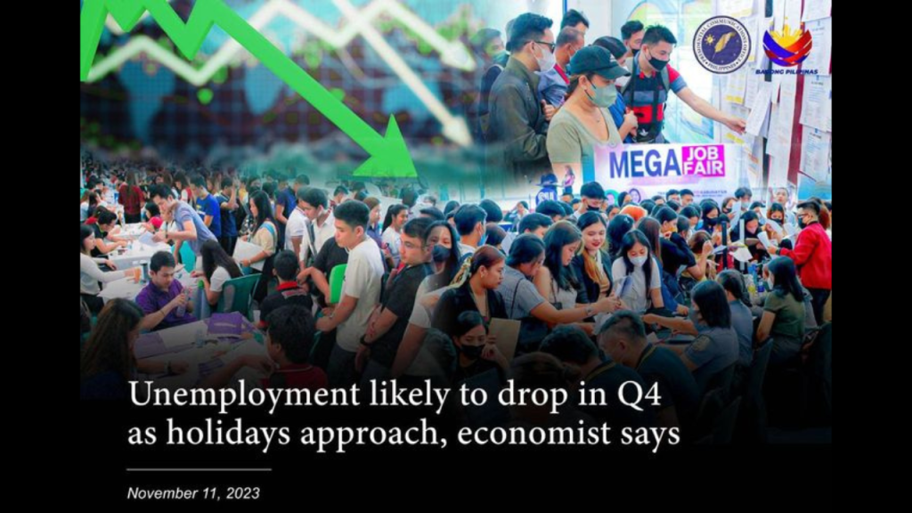 “Iyong unemployment rate, puwede pa pong bumaba iyan kasi October, November, December … dadami po iyong hiring ‘no, iyong mga employment opportunity, job opportunities, livelihood opportunities towards the holiday season,” he said in a news forum in Quezon City.