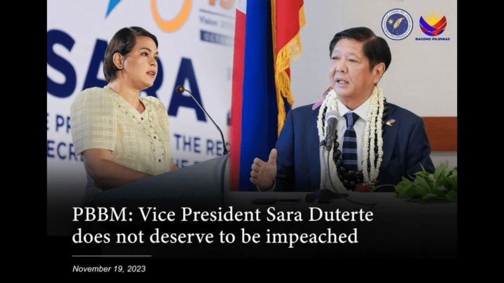 “Binabantayan namin nang mabuti because we don’t want her to be impeached. We don’t want her to—she does not deserve to be impeached. So, we will make sure that this is something that we will pay very close attention to,” President Marcos said.