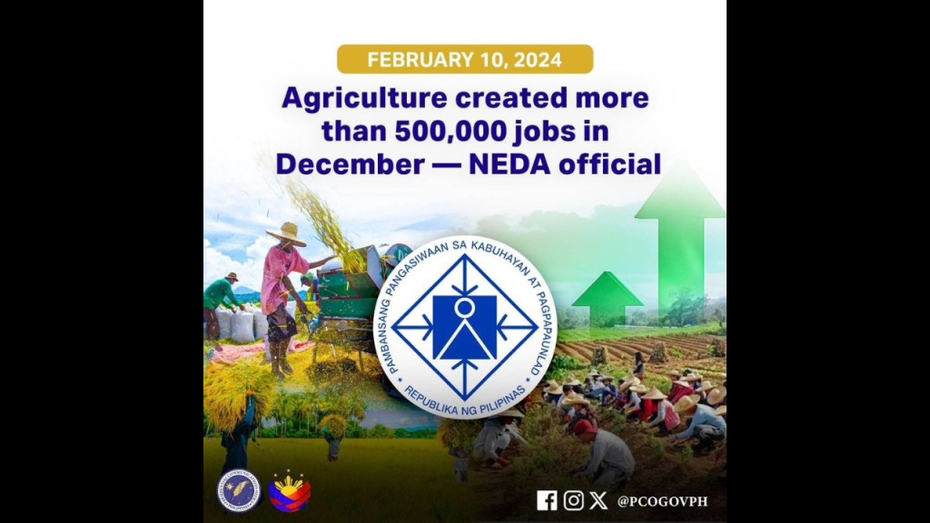The agriculture sector generated more than 500,000 jobs as the country recorded increased labor participation based on December employment rate data.