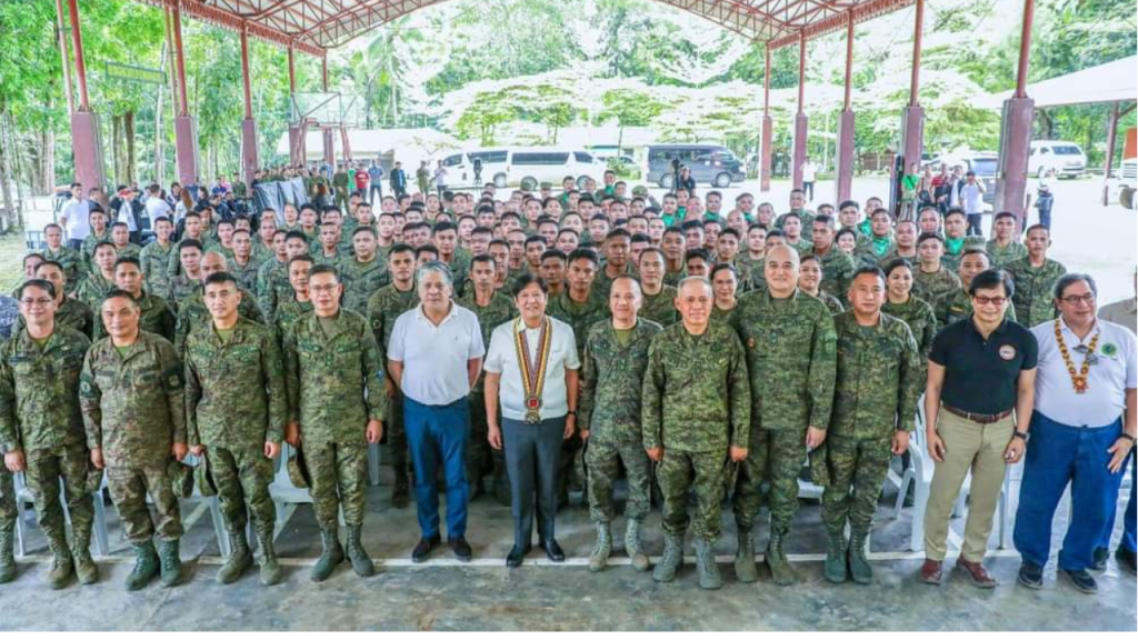 Speaking during his Talk to Troops at the Philippine Army’s 401st Infantry Brigade headquarters in Prosperidad, Agusan del Sur, President Marcos said his government has adopted new approach in tackling internal conflict—encouraging soldiers to become peacemakers while combating groups threatening peace and democracy.
