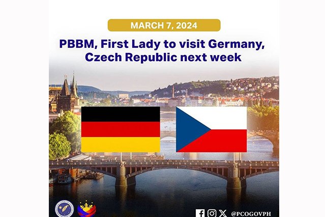 President Ferdinand R. Marcos Jr. and First Lady Maria Louise Araneta-Marcos have been invited by German Chancellor Olaf Scholz for a Working Visit to Germany, and by Czech President Petr Pavel for a State Visit to the Czech Republic. The back-to-back visits will be held from 11 to 15 March 2024.