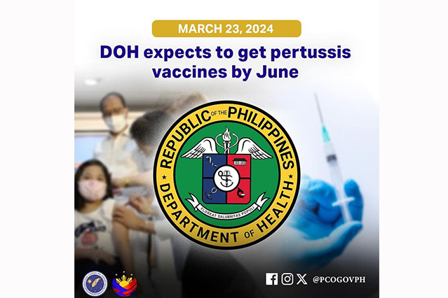 The Department of Health (DOH) is expecting additional doses of vaccines against pertussis that is expected to arrive in the Philippines by June this year, according to Health Undersecretary and spokesman Dr. Eric Tayag.