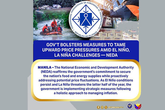 The National Economic and Development Authority (NEDA) reaffirms the government’s commitment to secure the nation’s food and energy supplies while proactively addressing potential price fluctuations. As El Niño conditions persist and La Niña threatens the latter half of the year, the government is implementing strategic measures following a holistic approach to managing inflation.