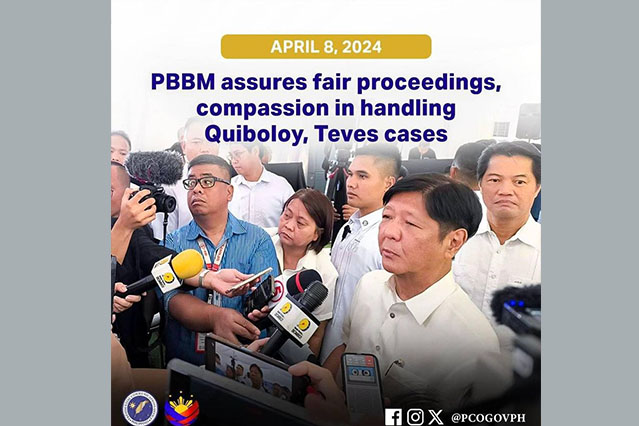 President Ferdinand R. Marcos Jr. on Monday assured Kingdom of Christ leader Pastor Apollo Quiboloy and former Negros Oriental congressman Arnolfo Teves of fair proceedings and compassion in treating their respective cases.