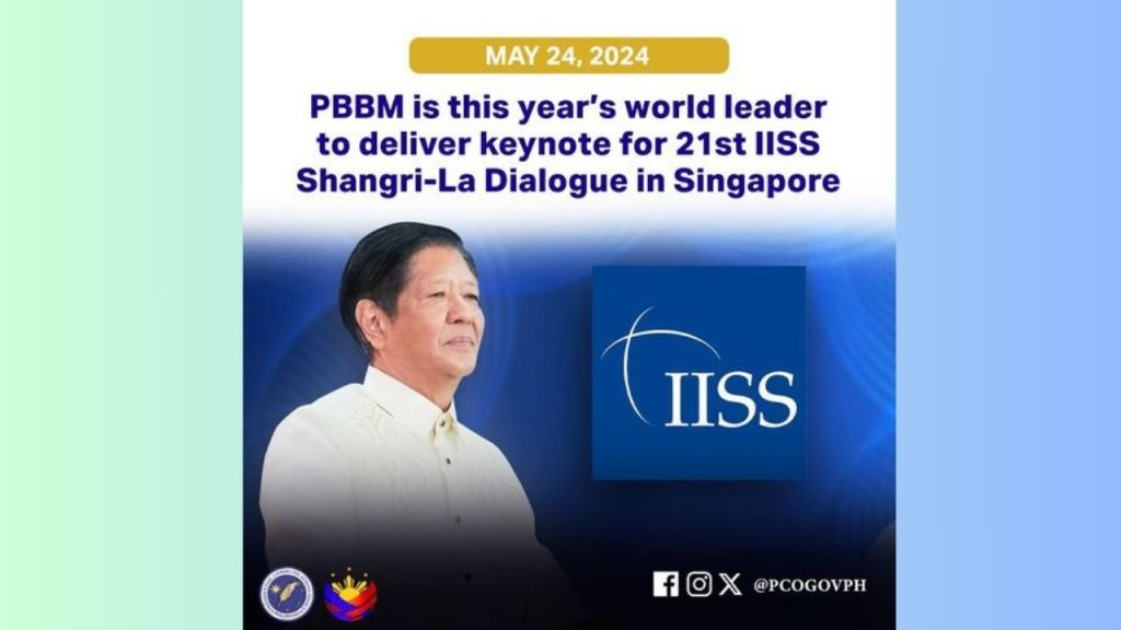 President Ferdinand R. Marcos Jr. will be in Singapore next week to attend the 21st edition of this year’s International Institute for Strategic Studies (IISS) Shangri-La Dialogue where he will deliver the keynote address to mark the opening of the event, according to the Department of Foreign Affairs (DFA).