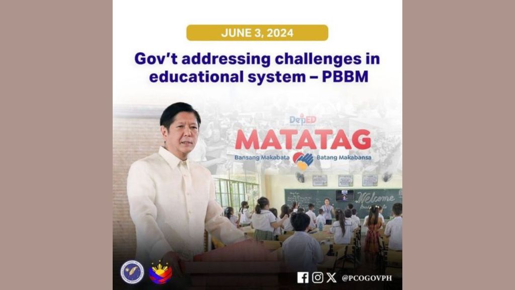 Through the MATATAG Agenda, the administration is addressing challenges to basic education by decongesting the basic education curriculum, building more classrooms and providing learning materials and internet connections, especially in geographically isolated and disadvantaged areas, President Marcos said.