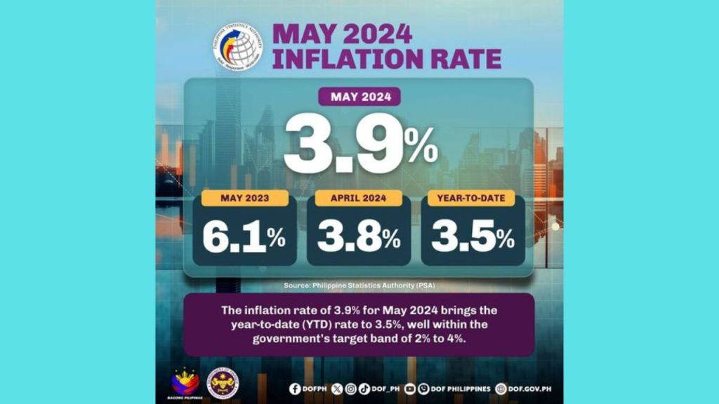 The inflation rate of 3.9% for May 2024 is significantly lower than the 6.1% recorded in the same period last year.