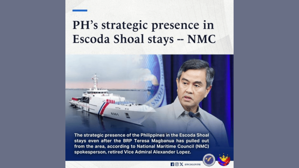 The strategic presence of the Philippines in the Escoda Shoal stays even after the BRP Teresa Magbanua has pulled out from the area, according to National Maritime Council (NMC) spokesperson, retired Vice Admiral Alexander Lopez.