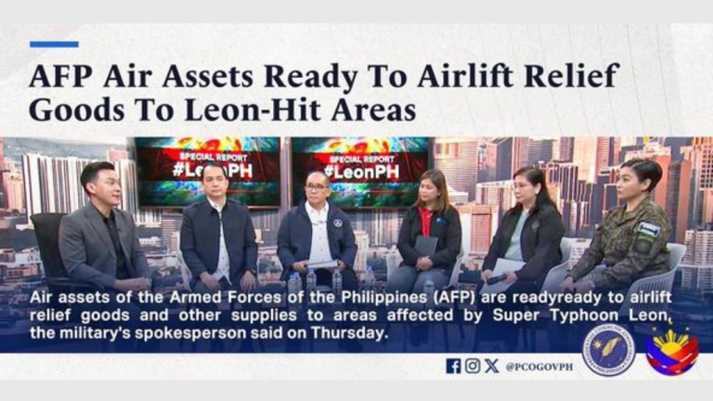 Padilla made the remarks in a special report aired on PTV on Thursday. She said the AFP has “been very busy assisting” the public amid the impact of both Tropical Storm Kristine and Super Typhoon Leon.