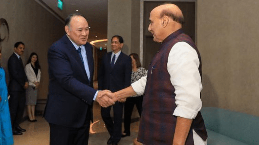 Philippine Secretary of National Defense Gilberto C. Teodoro, Jr. engaged in strategic discussions with Indian Defense Minister Shri Rajnath Singh during the 18th ASEAN Defense Ministers’ Meeting (ADMM) and the 11th ADMM-Plus on Friday.