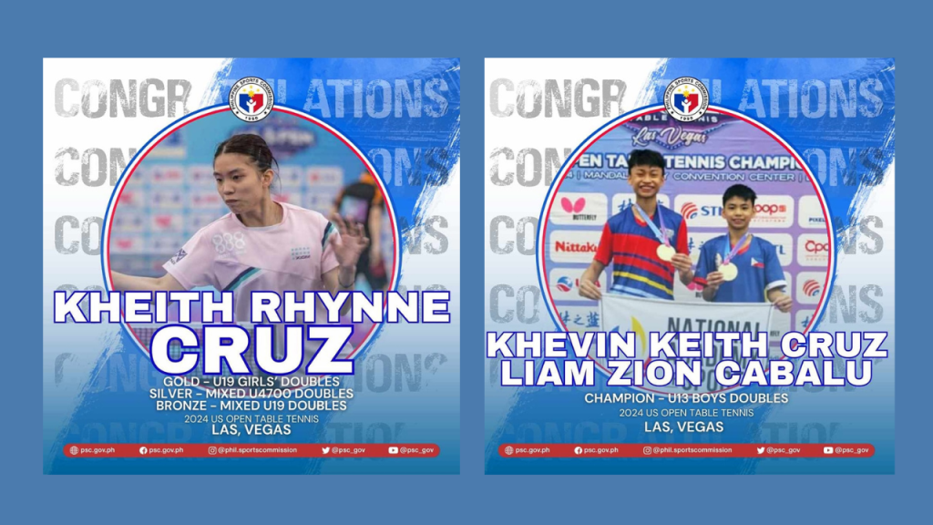 Filipino student-athletes from the National Academy of Sports (NAS) achieved remarkable success at the 2024 US Open Table Tennis Championships in Las Vegas, with Grade 7 Khevine Khieth Cruz from Tondo, Manila, and Grade 8 Liam Zion Cabalu from Quezon clinching gold in the Under-13 Boys Doubles event.