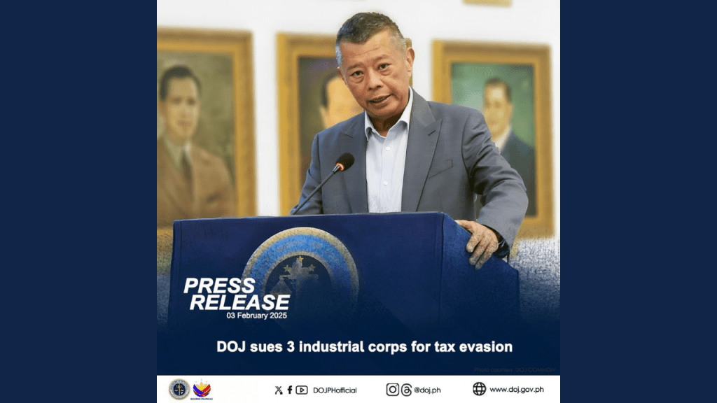 Pursuant to the government’s commitment to run after tax evaders, Justice Secretary Jesus Crispin “Boying” C. Remulla led the filing of multiple charges before the Court of Tax Appeals (CTA) against 3 industrial corporations for maliciously and willfully employing dirty business tactics to purposely defraud the State of its tax dues.