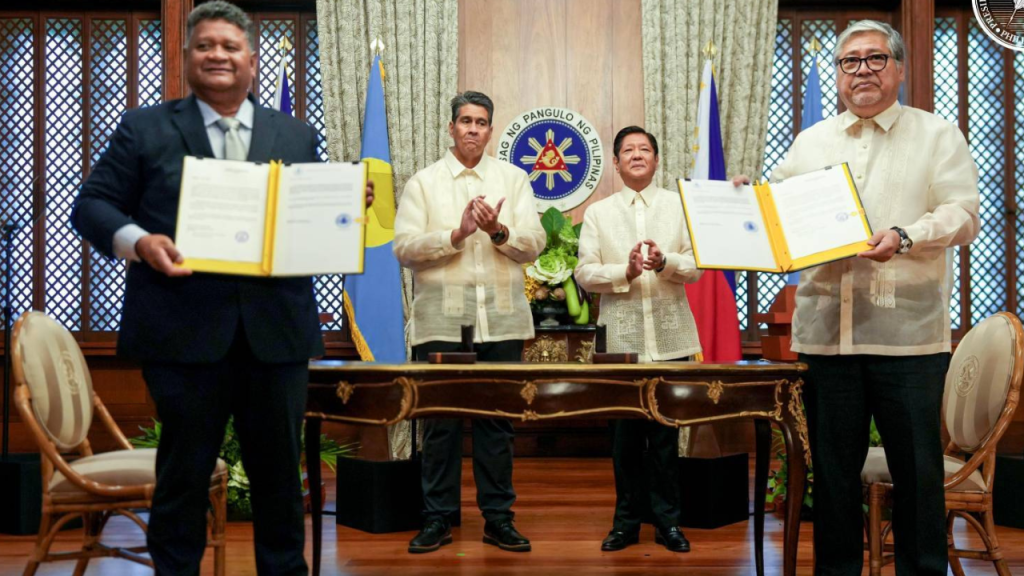 President Ferdinand R. Marcos Jr. and Palau President Surangel Whipps Jr. witnessed the signing of the agreements in Malacañan.