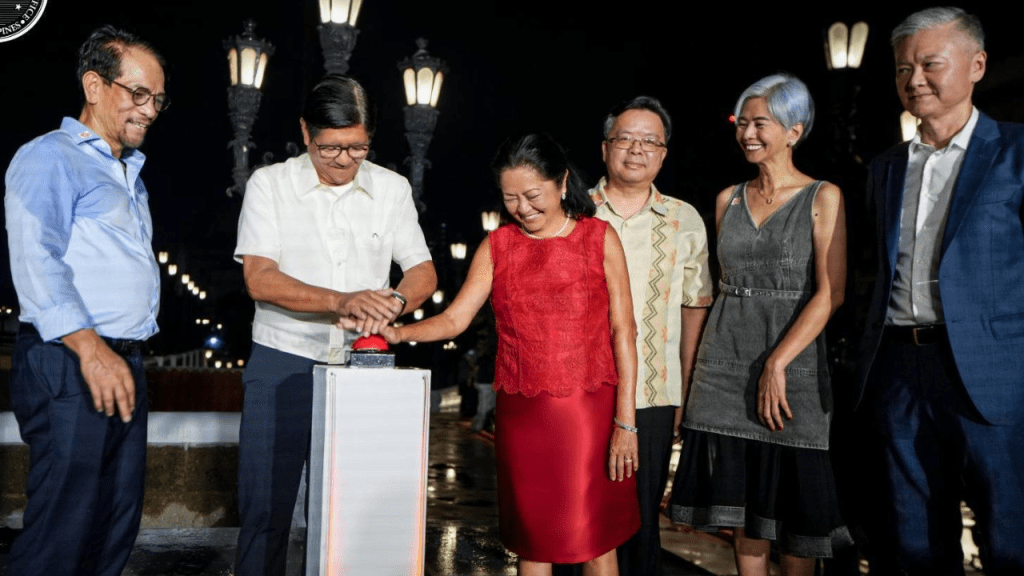 President Marcos and First Lady Marie Louise “Liza” Araneta-Marcos led the ceremonial lighting of the iconic Jones Bridge in Manila on Saturday evening, in celebration of the 50th anniversary of diplomatic relations between the Philippines and China.
